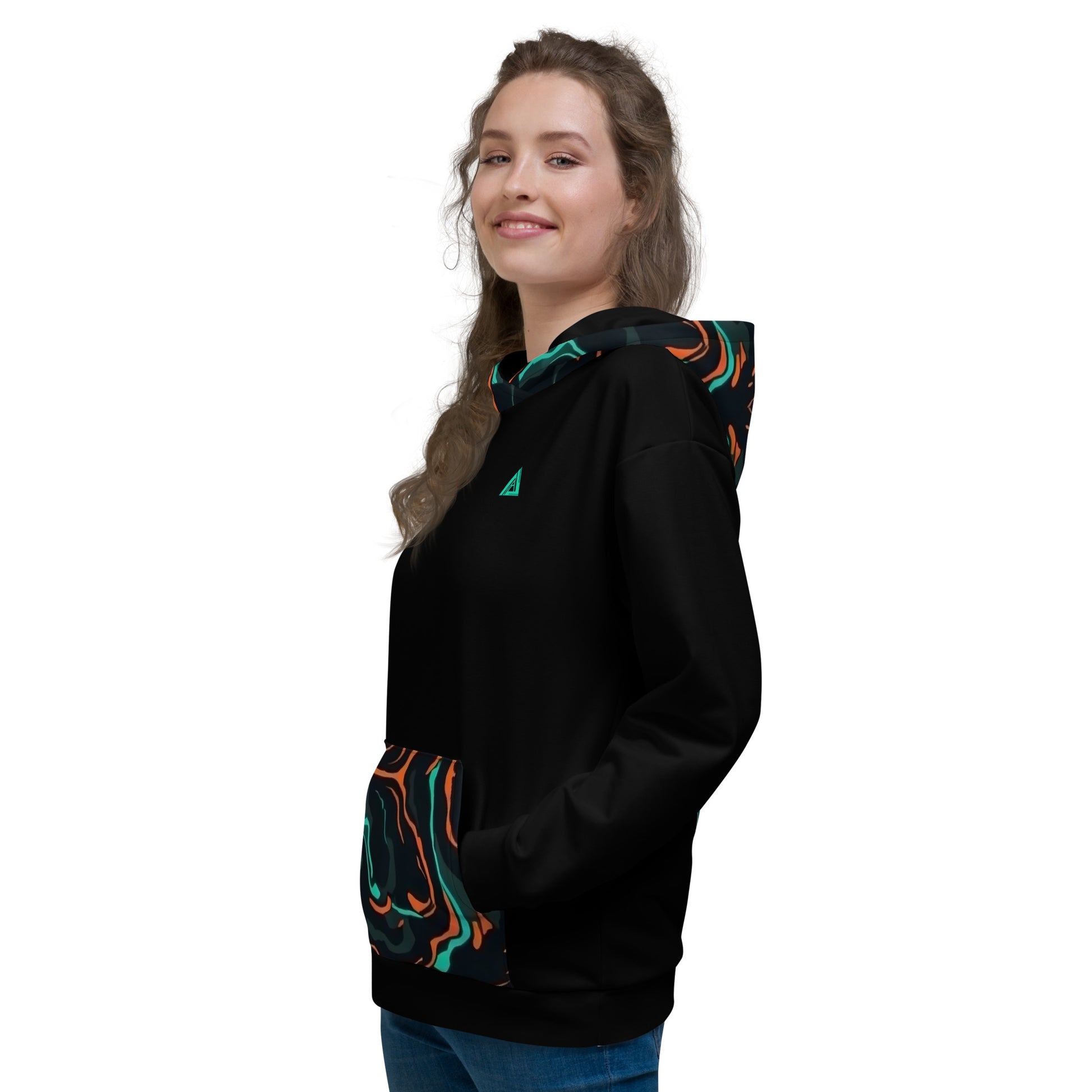 • Double-lined hood with design on both sides